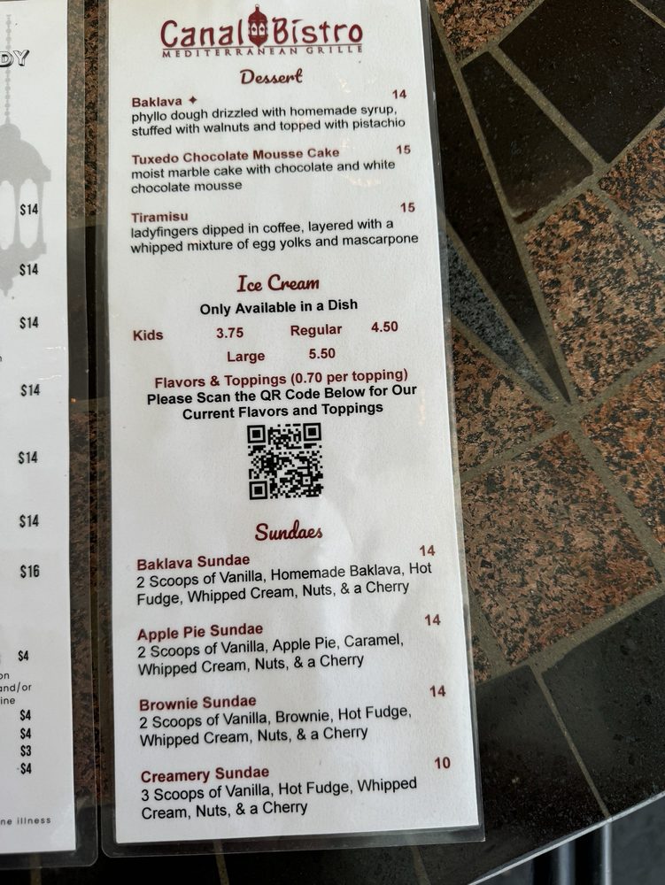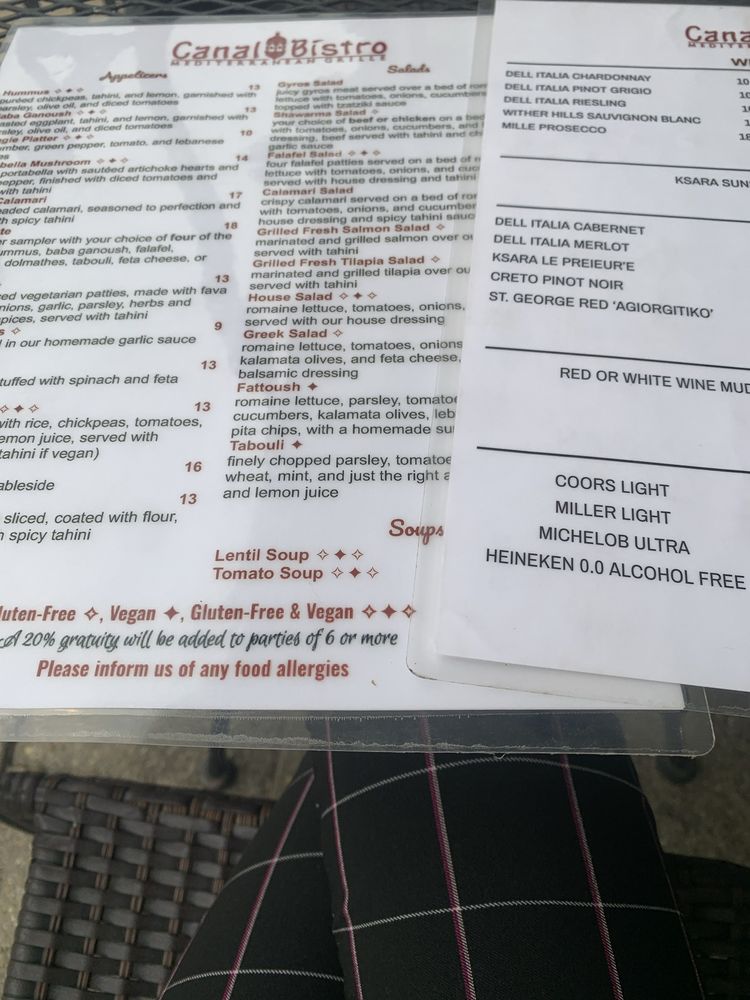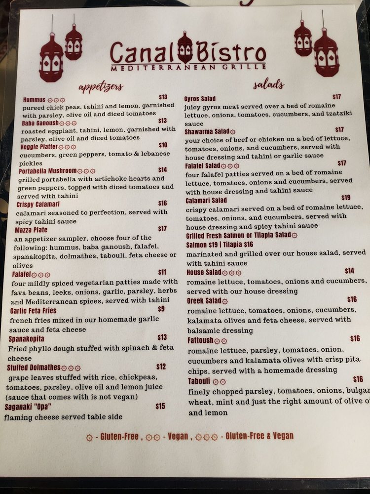Customers rave about the attentive service and delicious food, highlighting standout items such as the saganaki, mazza plate, chicken shawarma sandwich, and garlic feta fries. The warm and inviting atmosphere combined with the fresh and flavorful dishes make Canal Bistro a must-visit destination. Whether you're looking for a quick snack, a leisurely brunch, or a group dining experience, Canal Bistro has something to offer for everyone.